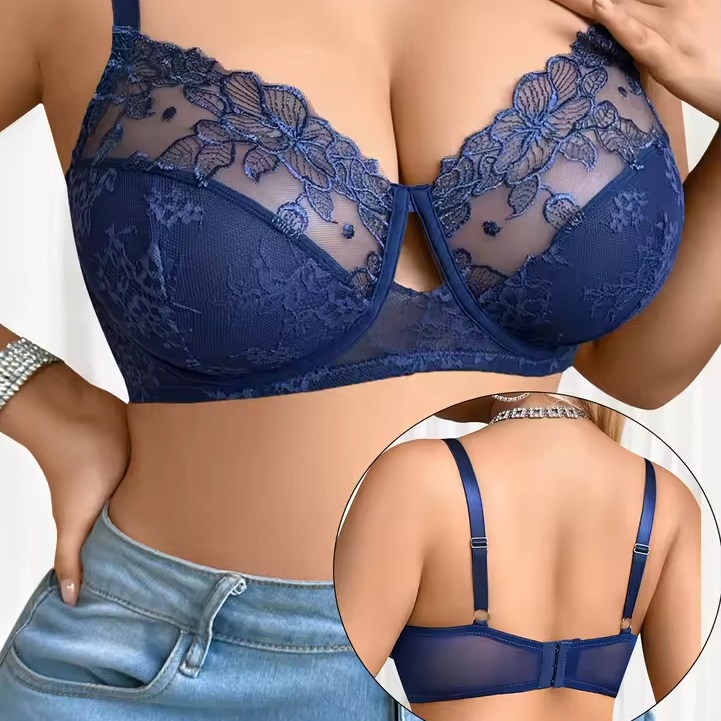 Sujetador de Alta Calidad de 3/4 de Copa, Lencería de Tallas Grandes, con Ribete de Encaje Bordado, Sujetador Push-Up para Mujer, MR2679